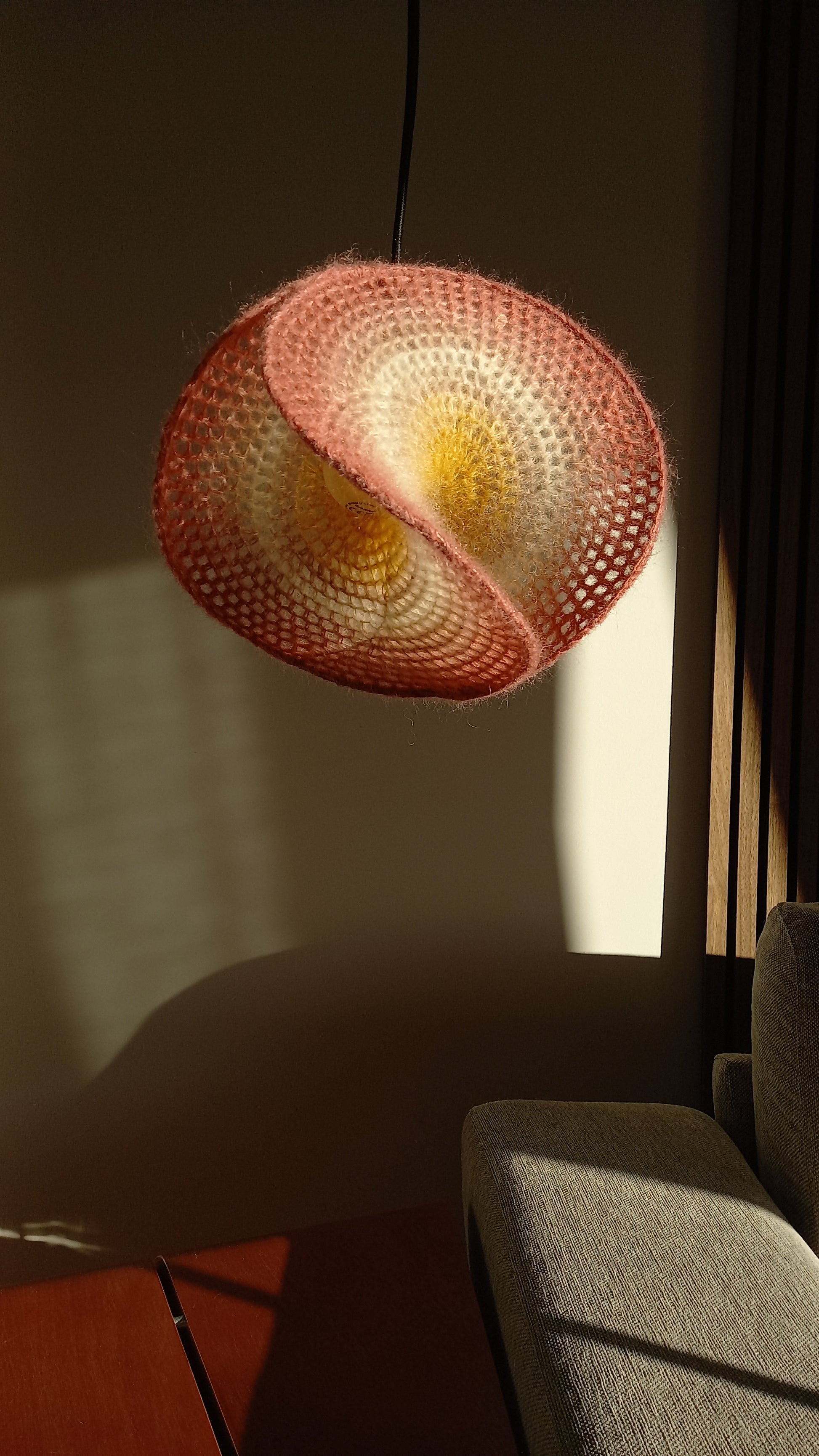 They were designed and handmade in Northern Norway, out of locally sourced leftover mohair. The material gives it soft glow and surface, beautiful colors, as well as natural fire-resistance.